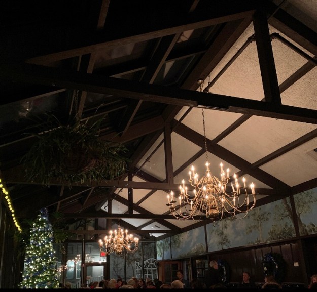 - Enjoy dinner in the Conservatory overlooking the Koi pond — during the holiday season you will also see reindeer! We ordered the Surf & Turf special (Filet Mignon and Stuffed Shrimp), the Filet Mignon (with asparagus and mashed potatoes), and the kids Chicken Fingers with French fries. For dessert we had the Chocolate Cake and Vanilla Ice Cream. We also enjoyed a glass of Pinot Noir from their award winning wine list, and a martini — everything was delicious!